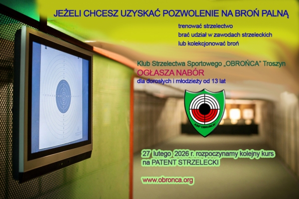 1 marca 2026 r. od godz. 10,00 do 14,55 w strzelnicy ul. Słowackiego 3 w Troszynie (zajęcia praktyczne z bronią palną).